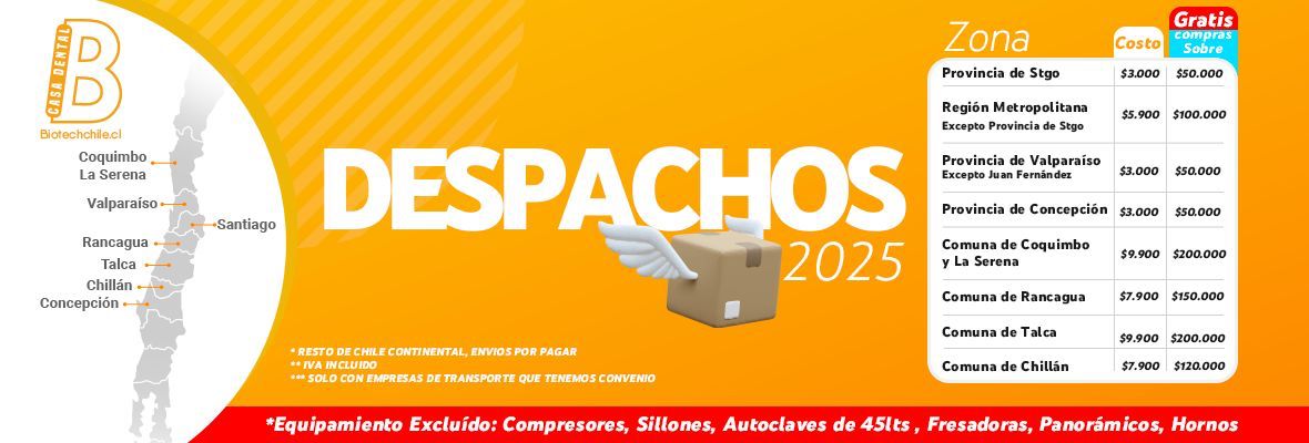 Biotech despacha el pedido realizado en un plazo de 48hrs hasta 120hrs hábiles confirmada su factura. Todos los despachos son enviados durante el día en un horario de 8:30hrs. hasta 18:00hrs.